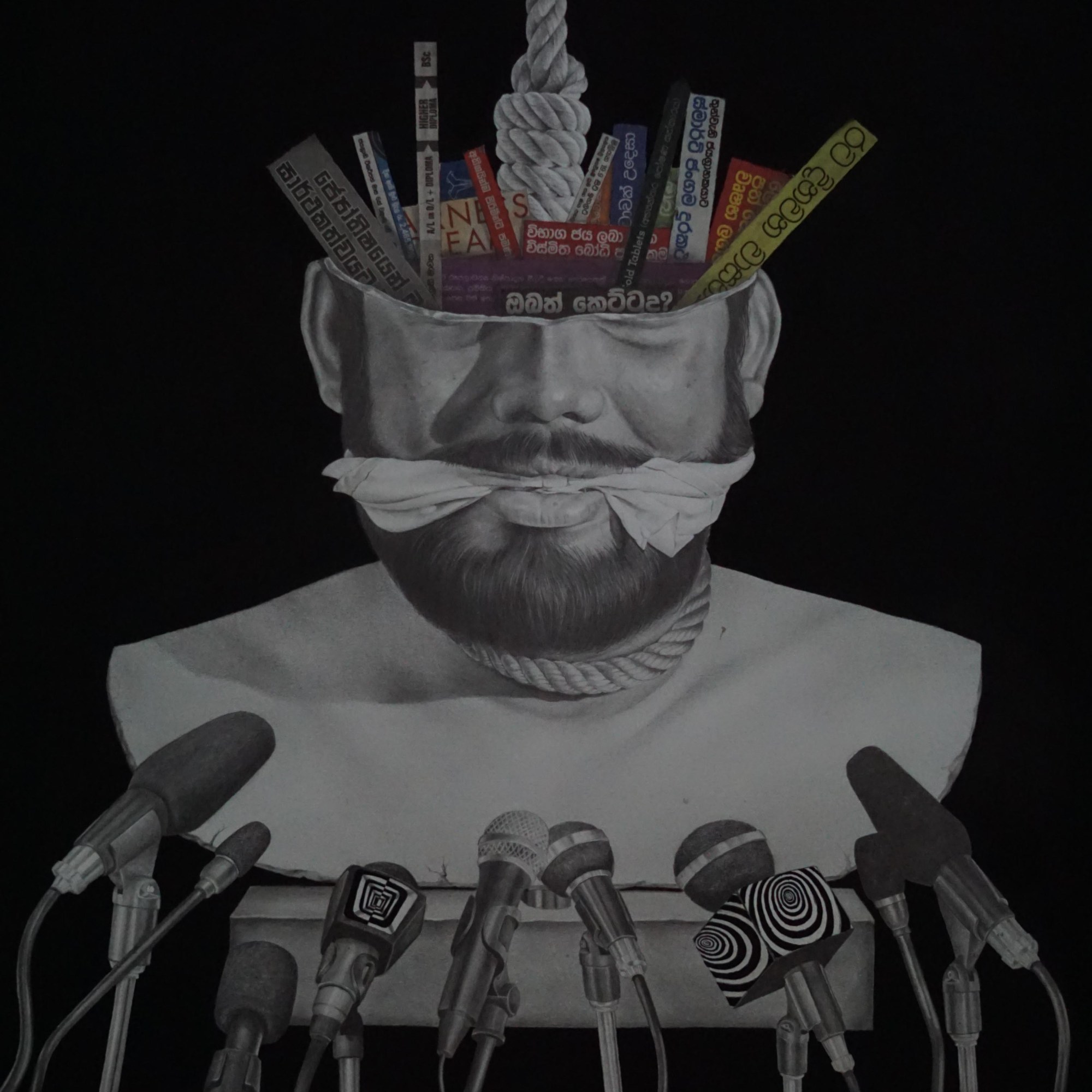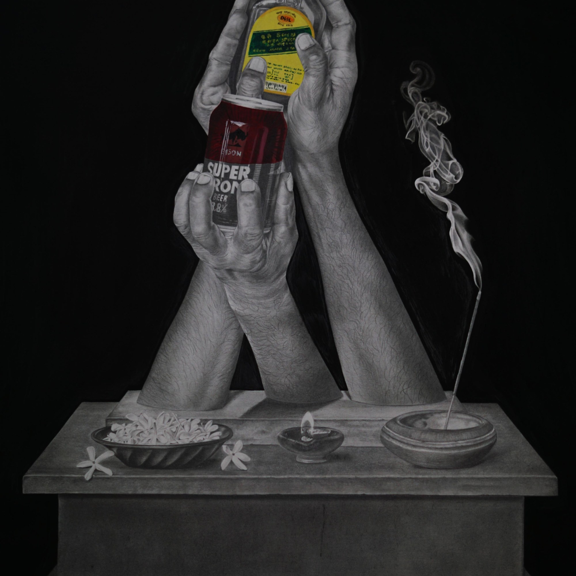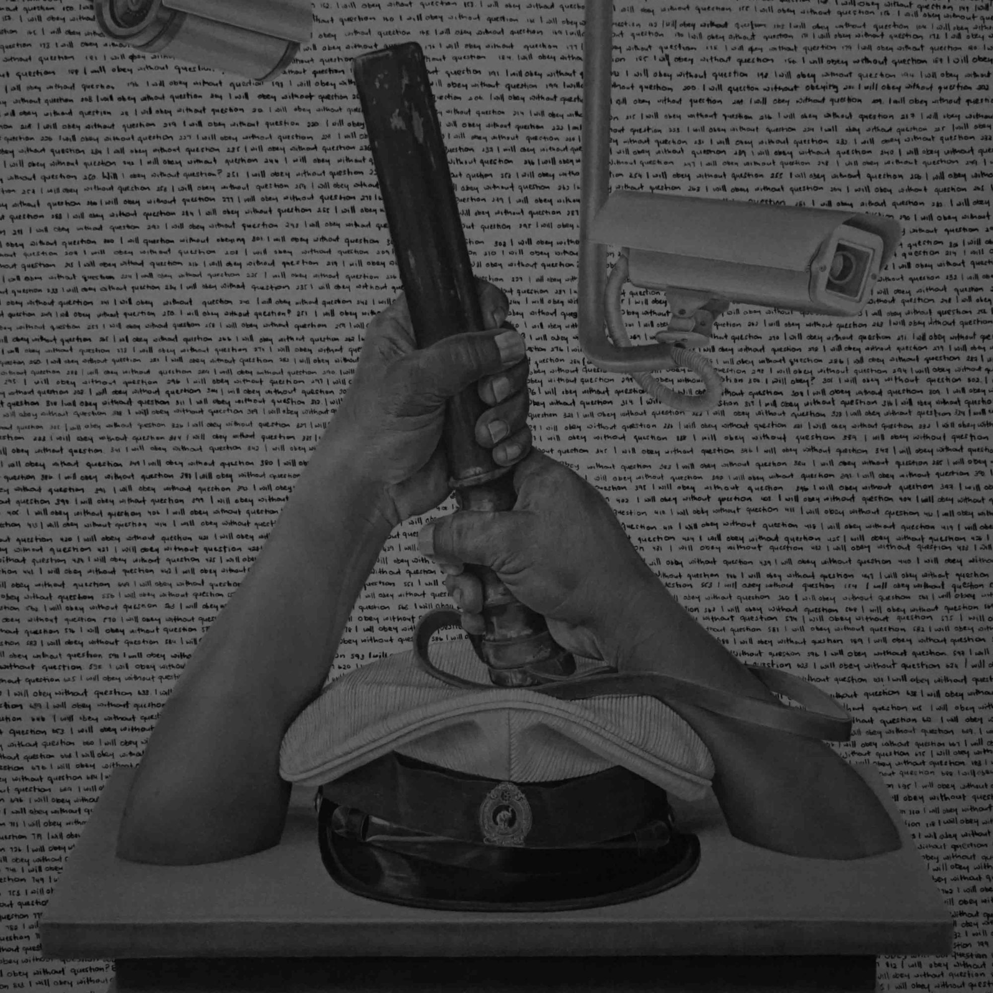 ‘On a Plinth’ explores the dominant paradigms of power during the age of digital revolution and modern capitalism. The artworks critique tools of social control, including religion, industry, the media, and the police. A plinth, traditionally used as a support structure for a statue or an object, forms the base of each artwork with the intention of elevating these instruments as spectacles.